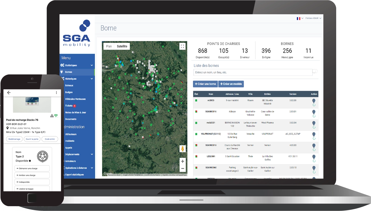 Supervisez vos bornes connectées depuis votre téléphone ou votre ordinateur afin de suivre leurs utilisations directement sur votre compte et d'avoir accès à de nombreuses informations.